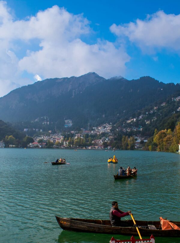 Glide across Naini Lake, a crescent-shaped freshwater gem at the heart of Nainital, offering paddle boating, rowing, and yachting amidst tranquil surroundings and lush hills.